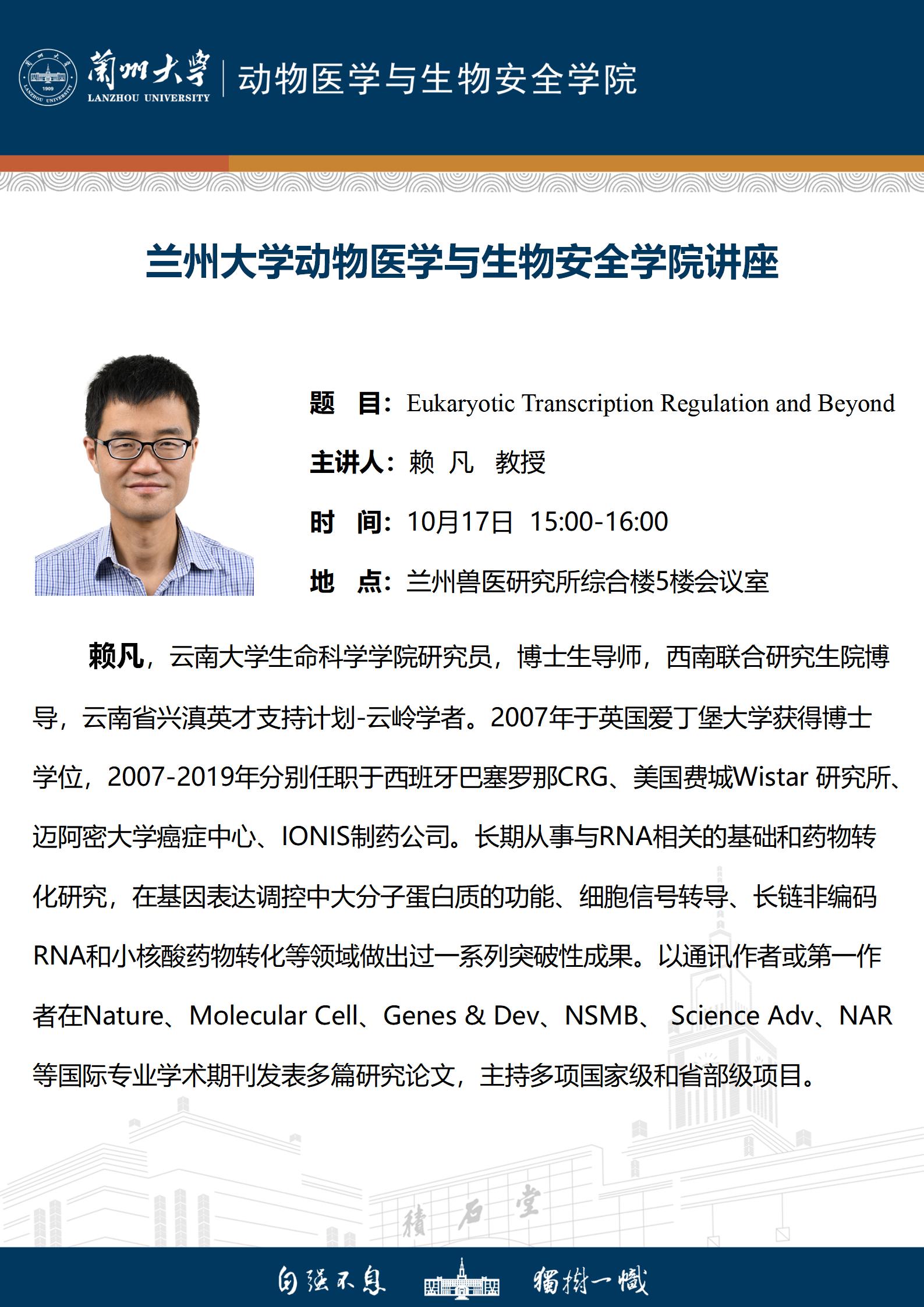 兰州大学动物医学与生物安全学院讲座——赖凡教授